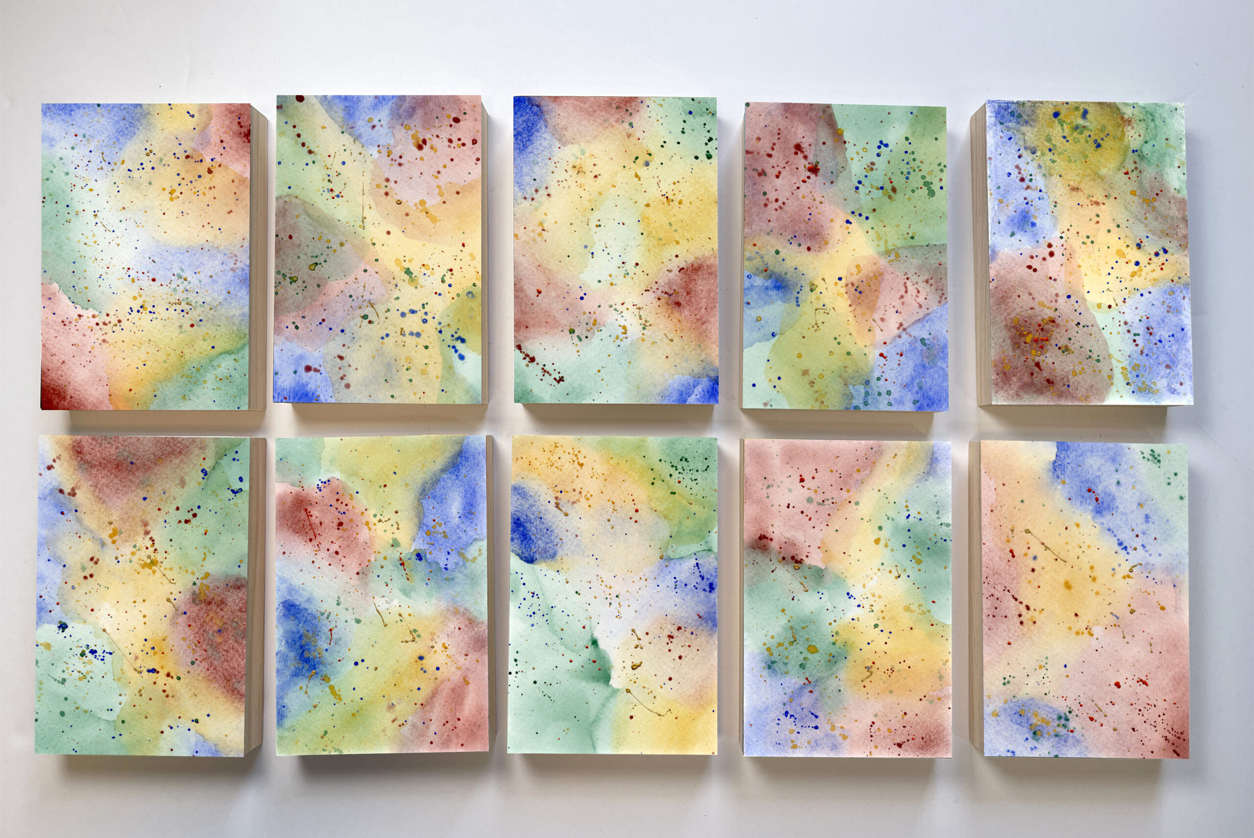 I am filled with joy to present these ten 4” x 6” abstract watercolor paintings that are delicately mounted on a 7/8” cradle wood panel. They are created as warm, visual reminders of the freedoms we are each chasing. Each piece is intimate in scale yet layered with deep meaning. You’re invited to come close, rest your eyes on the layered washes of watercolor, and to find the shiny sparks spread throughout the entire piece.